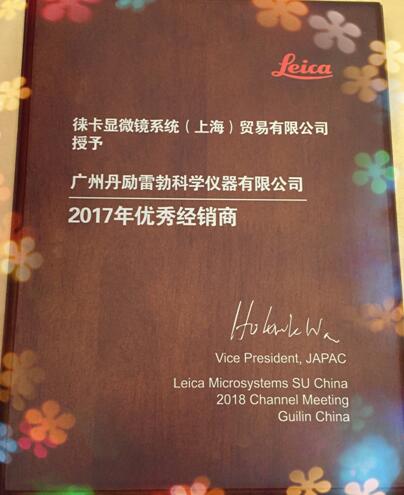2018年1月26日,作為徠卡公司廣東省醫療及公共事業(yè)的簽約代理,廣州丹勵雷勃科學(xué)儀器有限公司(丹利集團旗下子公司)參加了徠卡2018年度經(jīng)銷(xiāo)商大會(huì )暨答謝宴。2017年度,廣州丹勵雷勃科學(xué)儀器有限公司共計完成徠卡訂貨量130.6萬(wàn)美金(僅寬場(chǎng)顯微鏡部分),YOY同比增長(cháng)131%,喜獲徠卡2017年度優(yōu)秀經(jīng)銷(xiāo)商大獎!
