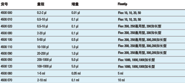 Finnpipette Digital單道移液器技術(shù)規格 |